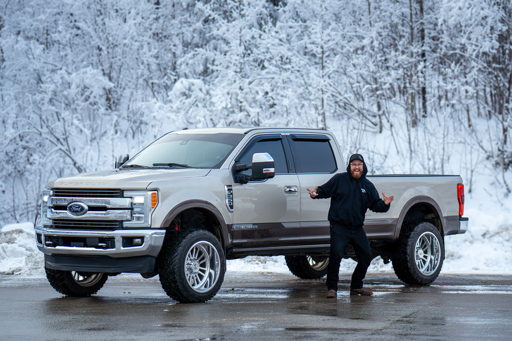 Phelps here lives a busy life. During the week he’s in charge of the shop and turning wenches under the hood but on the weekends he’s a dad, classic mustang nut, and is part of the Okanagan search and rescue! This means he’s built his truck to take him out to the woods and back again and again. It’s got almost more miles in the dirt than it does on the pavement! So hopefully when you meet Phelps it’s because you’re in our shop talking truck, but if you find yourself in the woods, you may be greeted by that big F350 traipsing out of the trees!