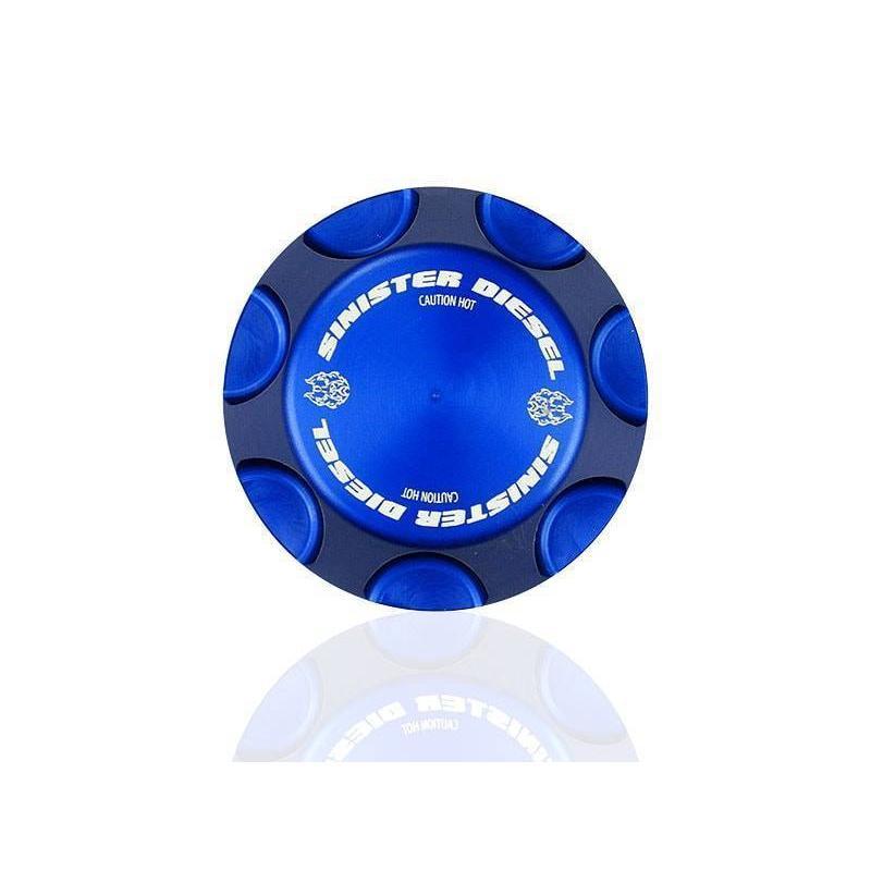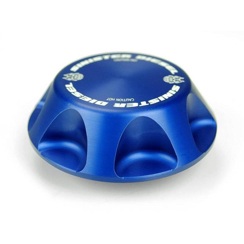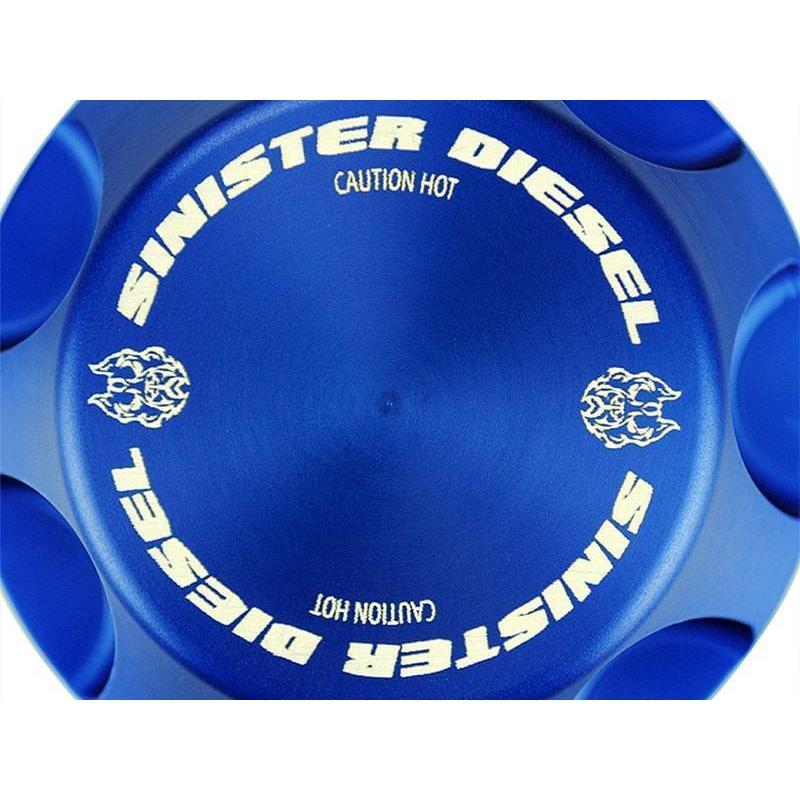Add a new look to your engine bay with the Sinister Diesel SD-FC-12v Oil Fill Cap for your 12-valve Cummins. It has been made from CNC machined, solid billet T6-6061 Aluminum. Then for the final touch, they gave it their Signature Sinister Blue to make it really pop! This cap truly looks as good as it works!