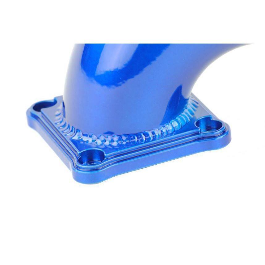 The Sinister SD-INTEL-5.9-94 Intake Elbow For Your 2nd Gen 12 Valve Dodge replaces the restrictive piping on your truck with a larger diameter, CNC machined, Mandrel-Bent, Aluminum Tubing Elbow. The increased diameter and large radius bend will prevent restriction within the intake, this means a noticeable increase in performance and turbo spool. Since it has stronger aluminum tubing and a CNC machined base plate, this elbow has been designed to hold higher boost levels. Sinister then tops it all of with their eye-catching Signature Blue High-Gloss Powder coat.