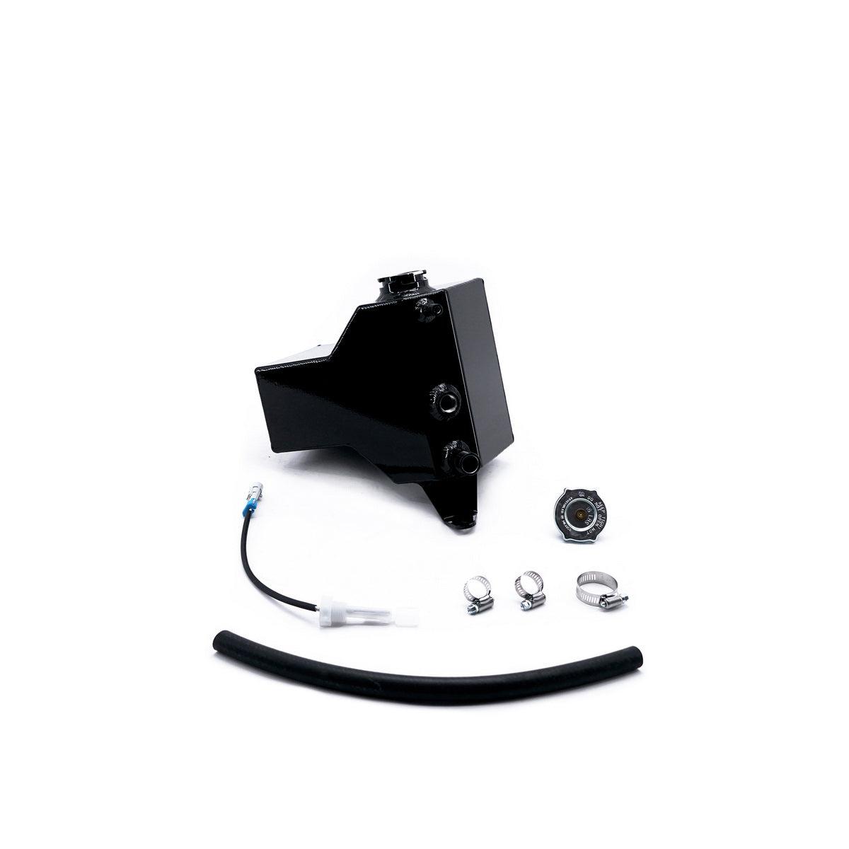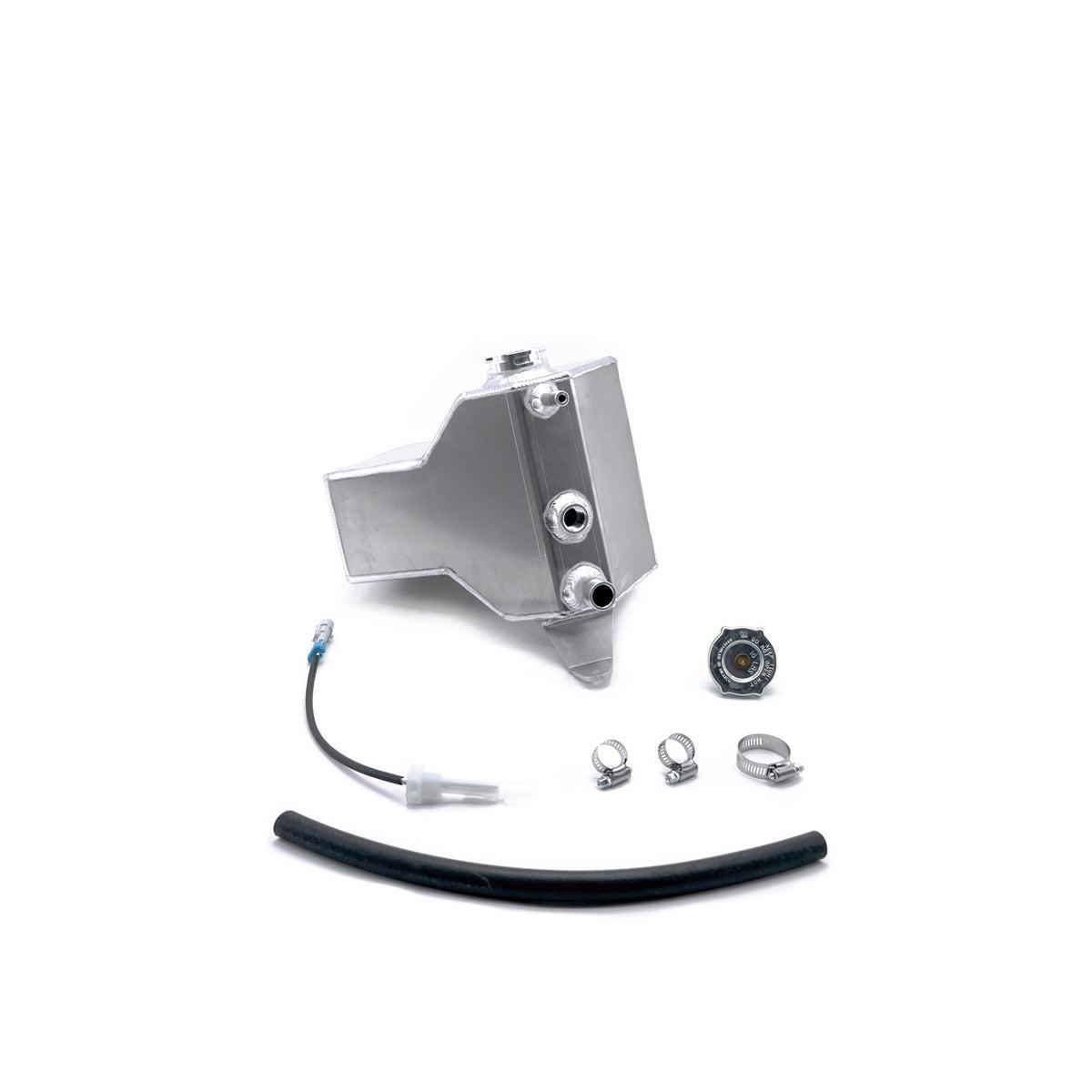 Replace your unappealing and plain factory coolant reservoir with this clean-looking aluminum reservoir. With this CNC cut and bent aluminum coolant tank, you will eliminate the possibility of having a leaking coolant tank. The factory plastic unit can old and ugly over time taking away the clean look of your engine bay.