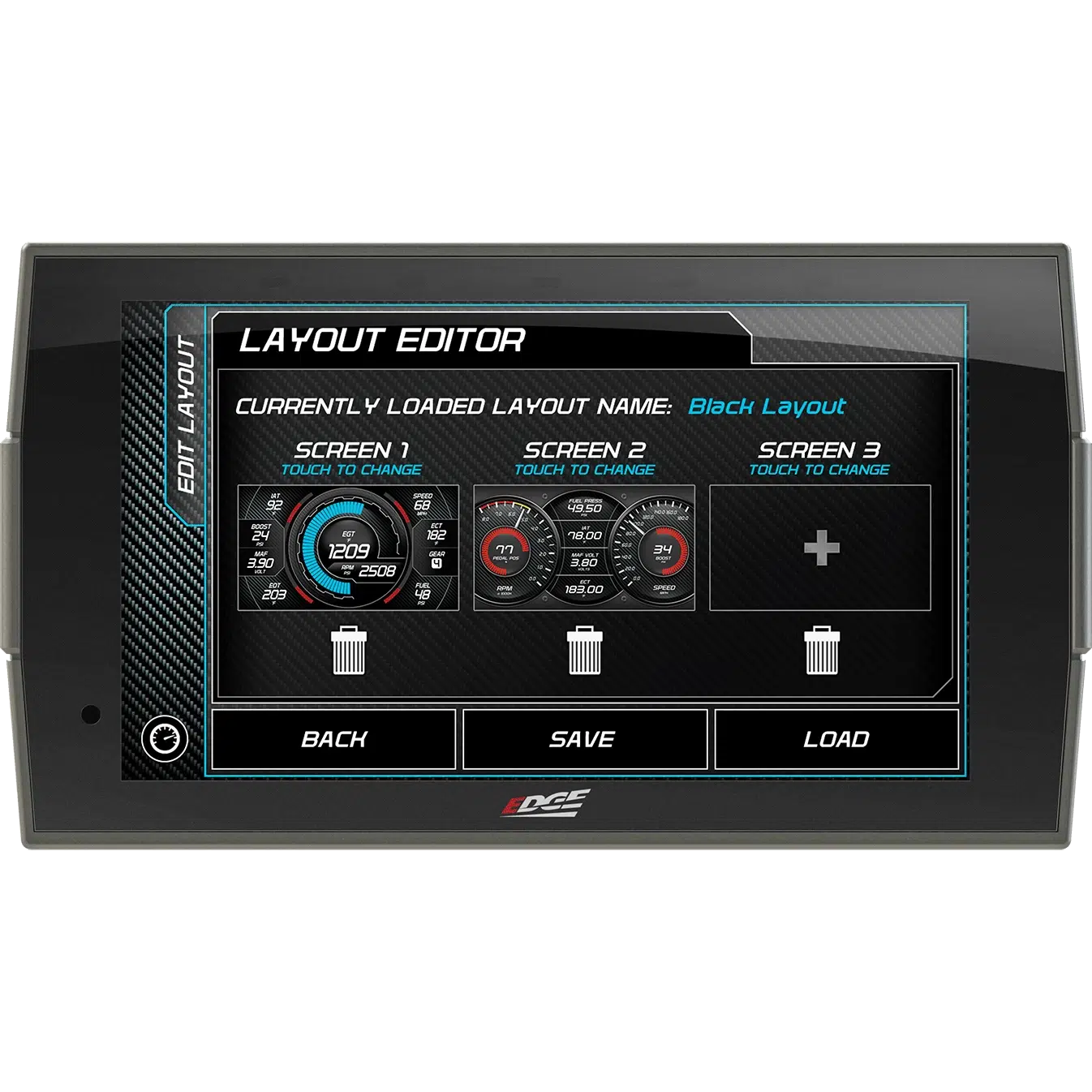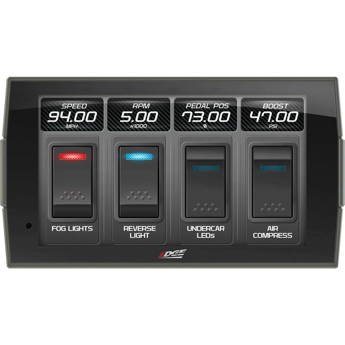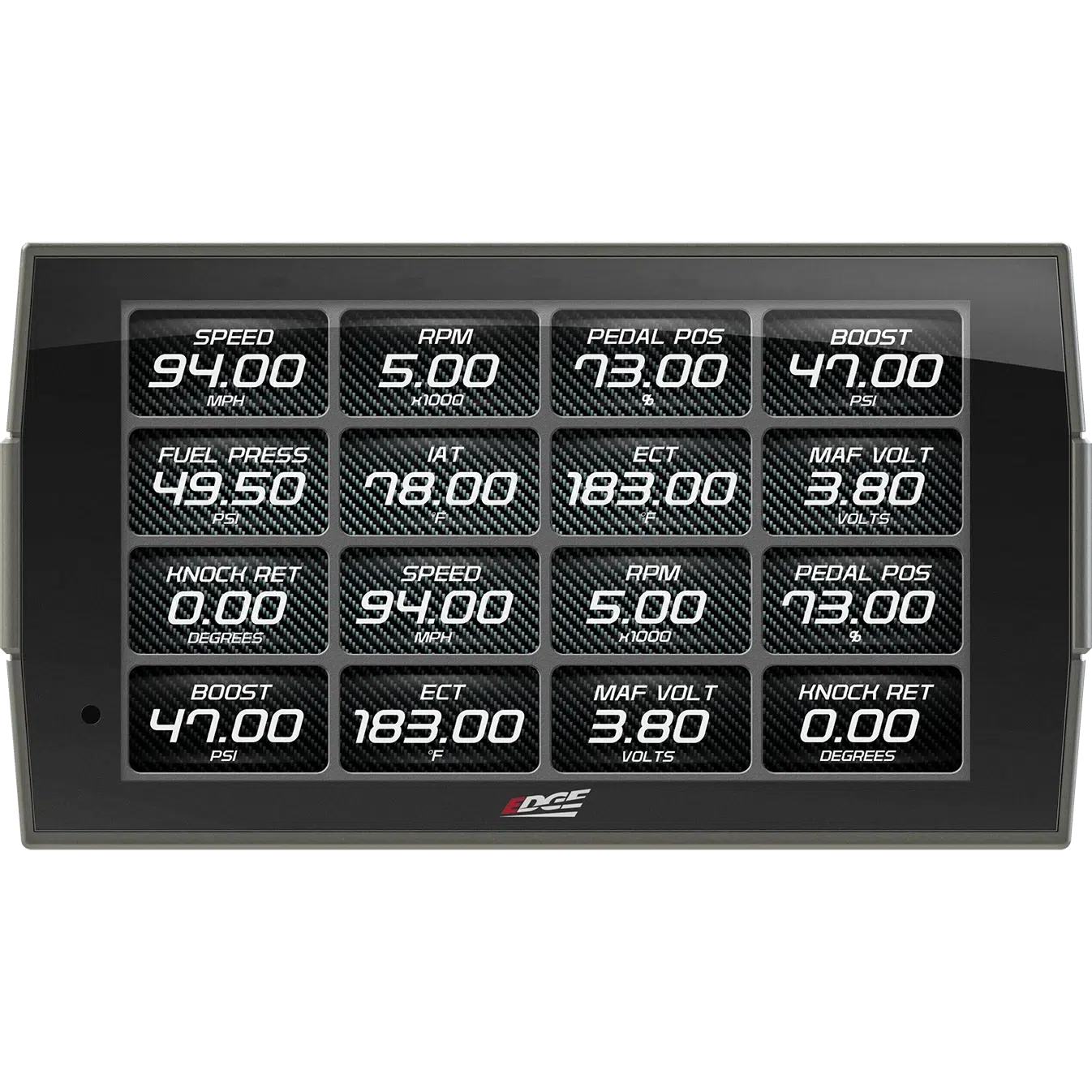 - Swipe capability allows easy switching between screens as needed for towing, performance, economy, etc