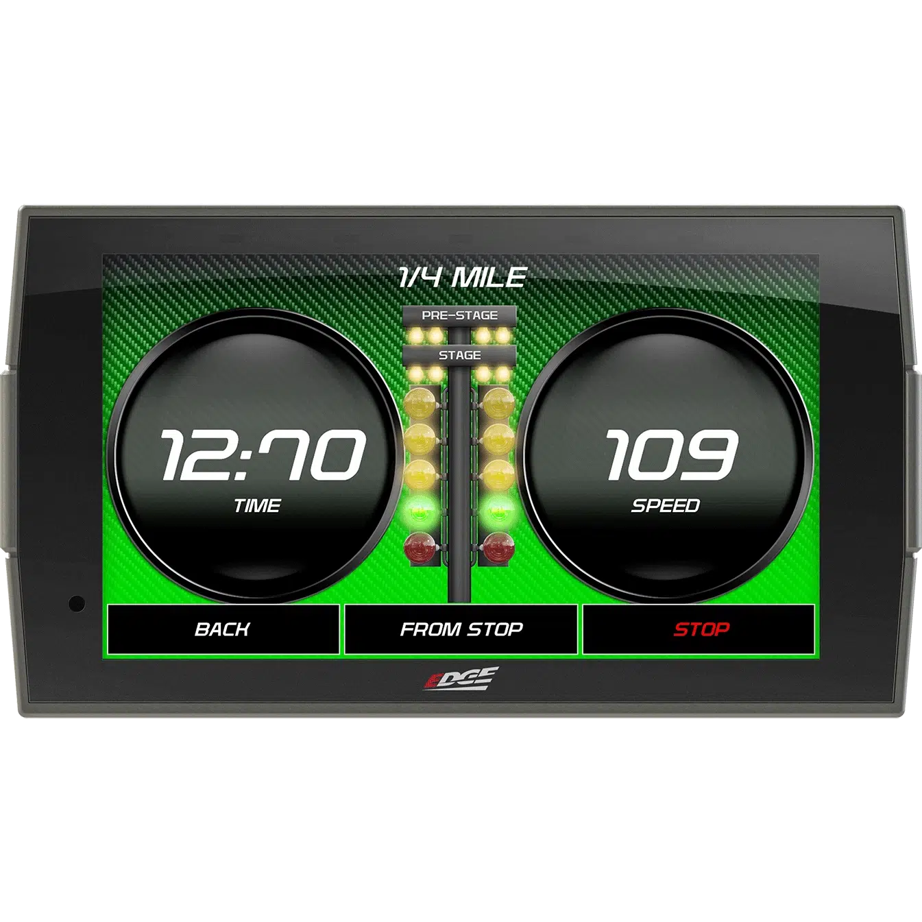 - Built-in performance meter measures 0-60, mile times and more