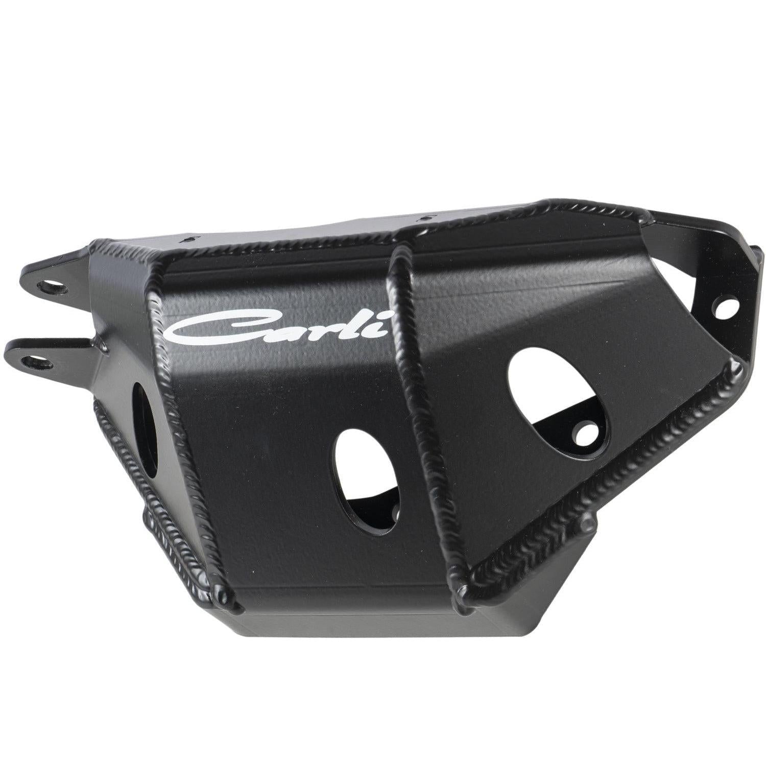 The integrity of your front differential is often something that gets overlooked or forgotten. The soft steel on the lip of the differential cover is vulnerable to impact; the last thing you want is to roll over a boulder and bash a hole in your cover. The Carli Front Differential Guard provides your ring and pinion with a solid steel shield should impact be imminent.