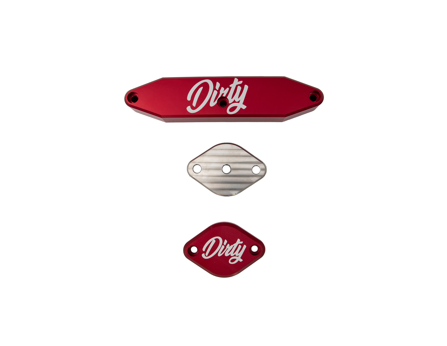 The Dirty Delete Kit's key feature is a CNC machined one-piece 6061 T6 Aluminum Pass Through Plate. The Exhaust Manifold Block Off Plate is CNC machined from T304 Stainless Steel which accepts any aftermarket 1/8" NPT EGT Probe.