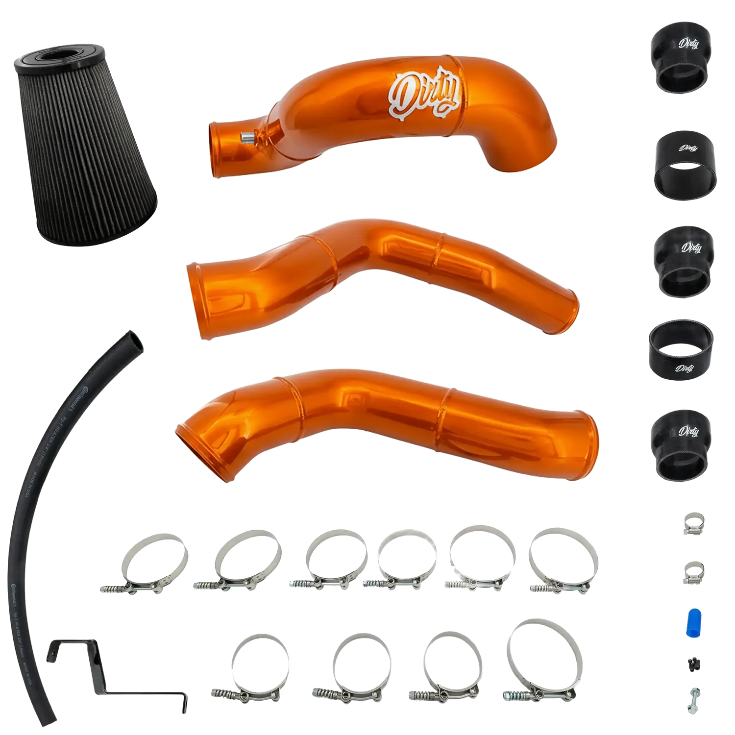 Upgrade your 2013-2018 Cummins with the Dirty Diesel Customs Stock Turbo Intercooler Piping Kit. Designed to replace the restrictive factory piping using the best flow path possible, this kit includes Dirty Diesel Custom's 4th-Generation Cummins 3.5" Driver's Side Charge Pipe and 3.5" Passenger Side Charge Pipe in the No Intake (I67-INT-A138) option, and includes the 4" Turbo Intake and P40CALL Air Filter in the Intake Included (I67-INT-A126) option. This kit was engineered using 3D scanning technologies for a perfect fit and optimized routing through your engine.