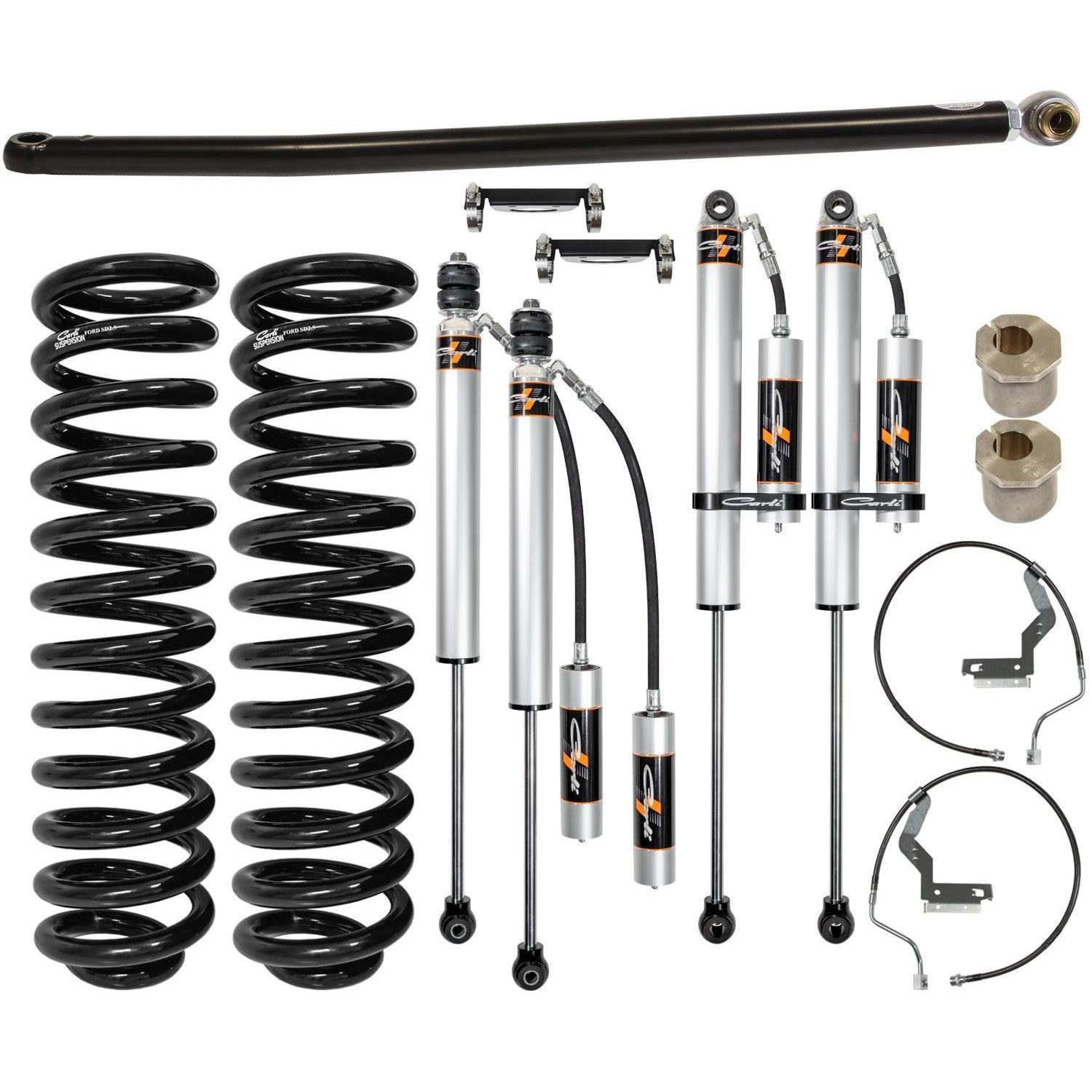 The perfect lift kit for those wanting optimal performance on highways and off-road, this Backcountry lift kit includes Carli custom-tuned 2.0 remote reservoir shocks built with 6063 Aluminum, 5/8″ hardened steel chrome plated shaft, and 6061 billet rod ends. Front Linear-Rate Coil Springs are tighter when cornering and react consistently throughout any compression range, making them more responsive and predictable.