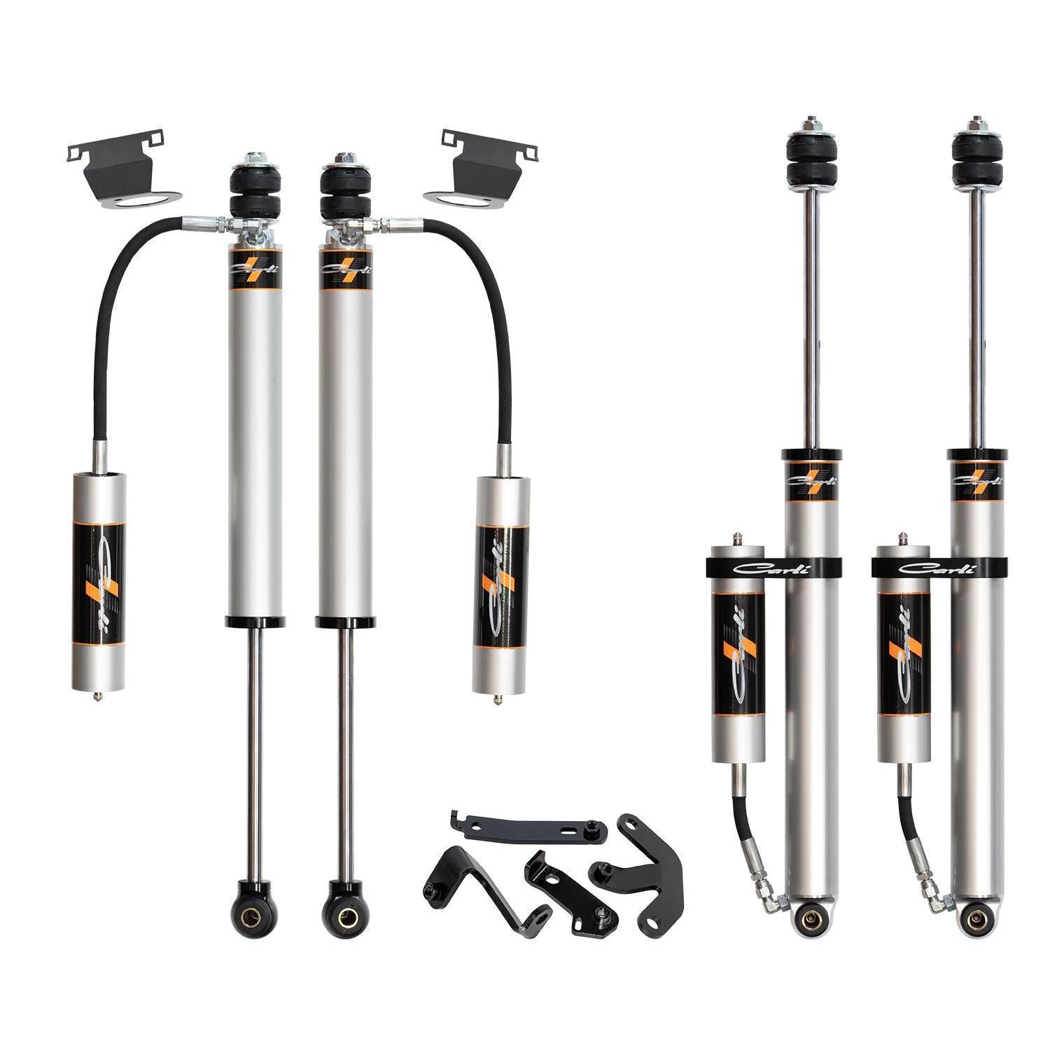 The perfect comprehensive suspension setup for your 2500, with front linear-rate and rear multi-rate coil springs that provide a slight rear rake and smooth, soft highway driving and a stiffer, more controlled ride on rough terrain or hauling heavy loads. Paired with Carli's 2.0 remote reservoir shocks to further maintain stability, control, and provide superior bottom-out protection.