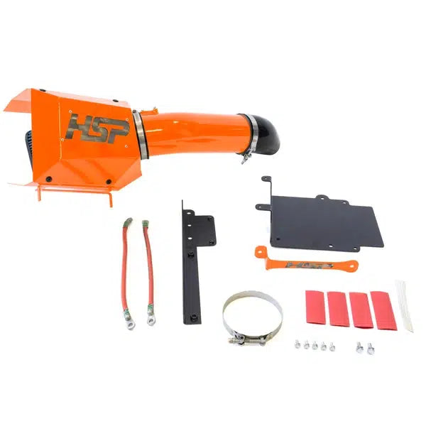 The HSP Diesel HSP Cold Air Intake boasts average extra horsepower and torque on the dyno. The secret? A sized up factory intake tube and smoothed out bends, creating a highly consistent and unobstructed path. This sets the HSP Cold Air Intake apart from its competitors. It comes with the sleek HSP Diesel-style heatshield box, which keeps hot engine air out of the intake. Why? Simple - cooler air is denser, and denser air means more power.