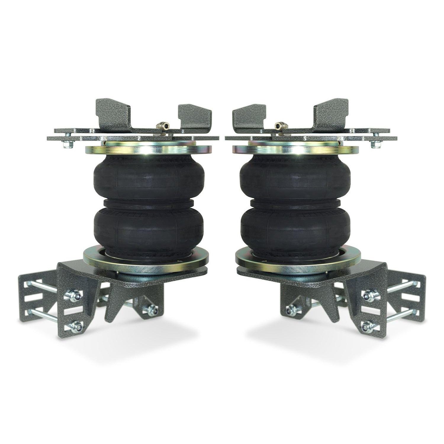 Use Pacbrake’s extreme-duty air springs to eliminate your vehicle’s sag, sway, and bottoming out. The Alpha XD 7500 Air Spring Suspension Kit will distribute weight evenly to your tires, supporting any load without overtaxing your suspension. These are the only extreme-duty air springs on the market with one-piece aluminum end caps and 20 support wires giving you maximum strength and durability. Rated for up to 7500 lbs. of load-leveling capacity*, Alpha™ XD 7500 is ideally suited for those towing/hauling big loads on a regular basis. The big 7-inch double convoluted bellow-type air springs level your truck’s stance while providing added support for an overall smooth and safe ride.