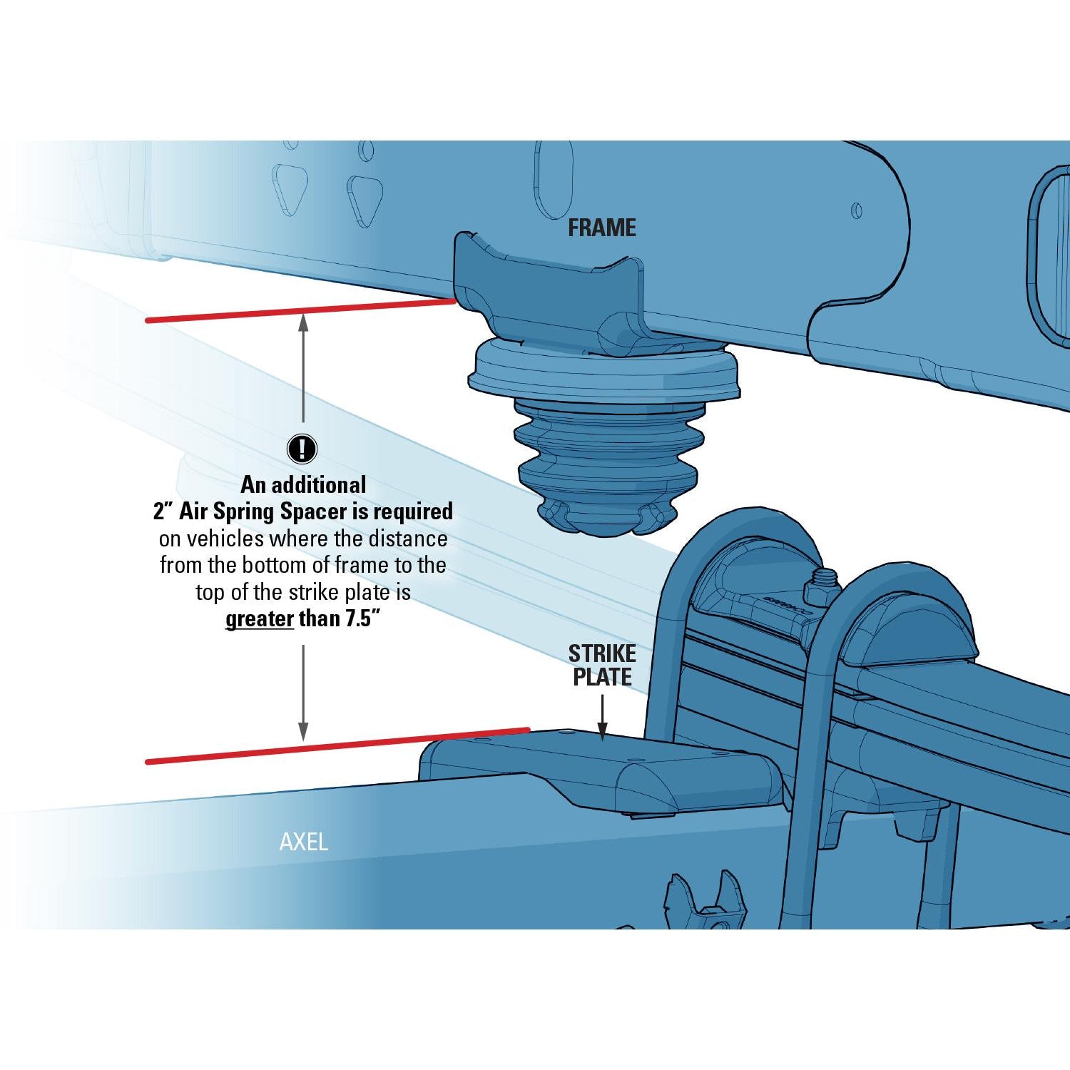 Note: For all truck bed lengths. / Will NOT fit models equipped with Adaptive Ride Control. / An additional 2” Air Spring Spacer (HP10152) is required on vehicles where the distance from the bottom of the frame to the top of the strike plate is greater than 7.5”.