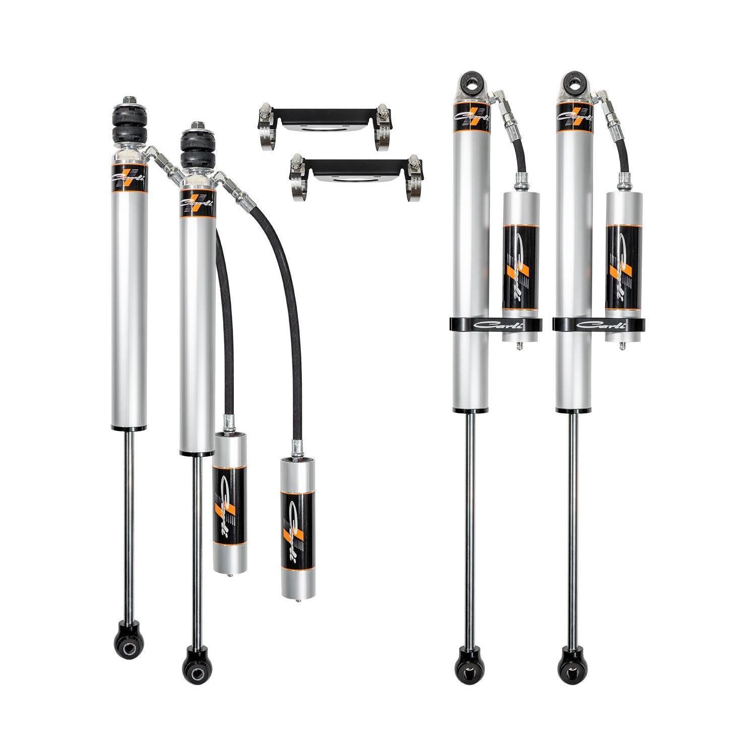 The perfect lift kit for those wanting optimal performance on highways and off-road, this Backcountry lift kit includes Carli custom-tuned 2.0 remote reservoir shocks built with 6063 Aluminum, 5/8″ hardened steel chrome plated shaft, and 6061 billet rod ends. R2 Linear-Rate Coil Springs in the front to provide tighter control when cornering and react consistently throughout any compression range, making them more responsive and predictable.