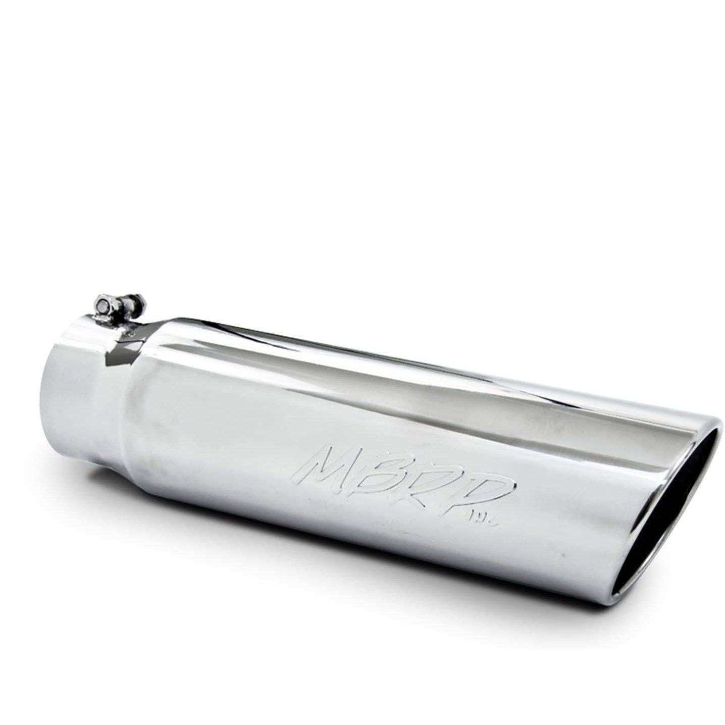 The MBRP T5124 is a 18" Long Single Wall Exhaust Tip for any 4" Exhaust System. If you're looking to put the finishing touch on your truck this is it! It features an angled cut 5" outlet.