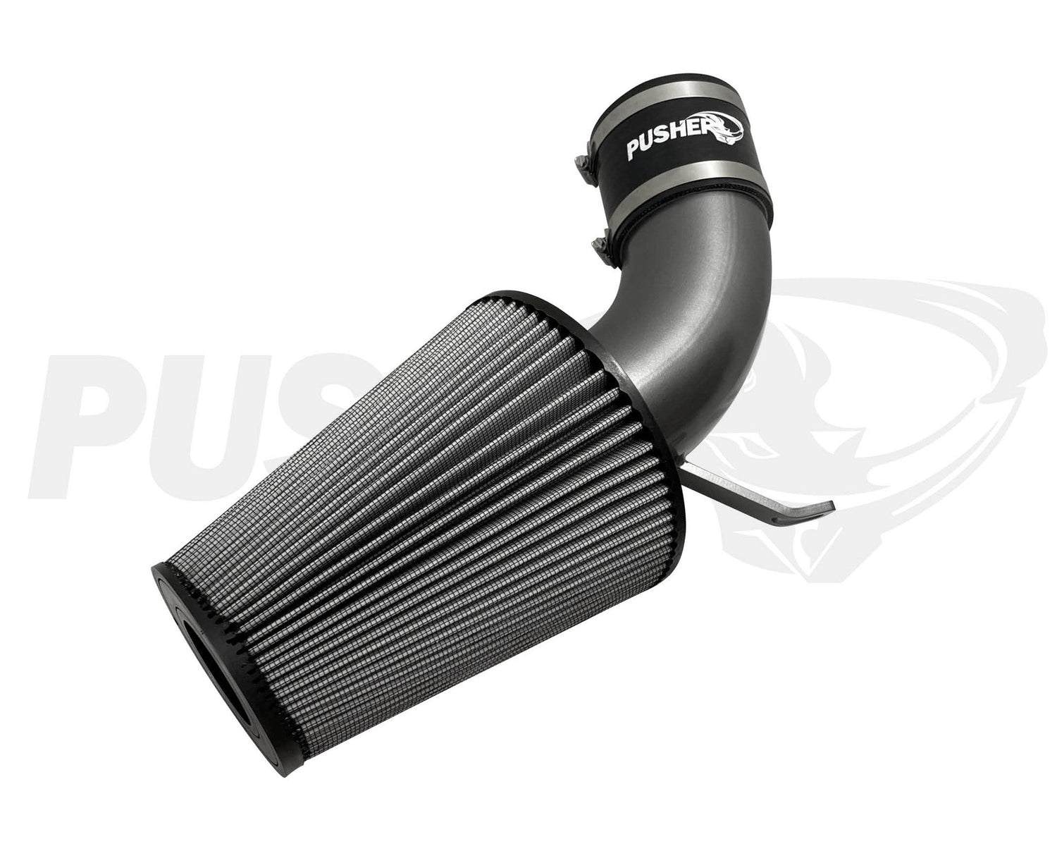 The Pusher PDC9193CAI Front Mount Cold Air Intake System features a massive Pusher 40CAL washable air filter as well as mandrel-bent 4" tubing. This system offers a super short run from the air filter to the turbo, which means more air will get your engine!