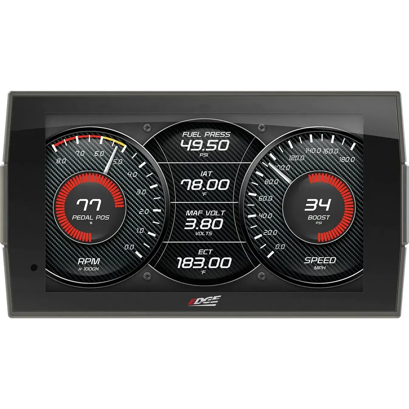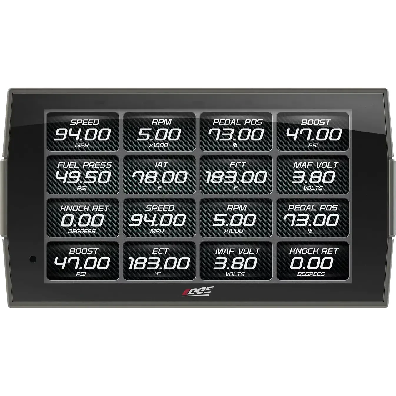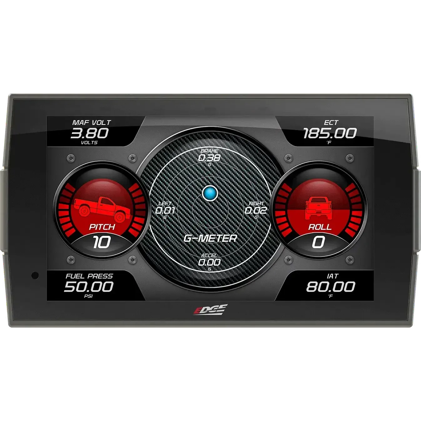 - Swipe capability allows easy switching between screens as needed for towing, performance, economy, etc.
