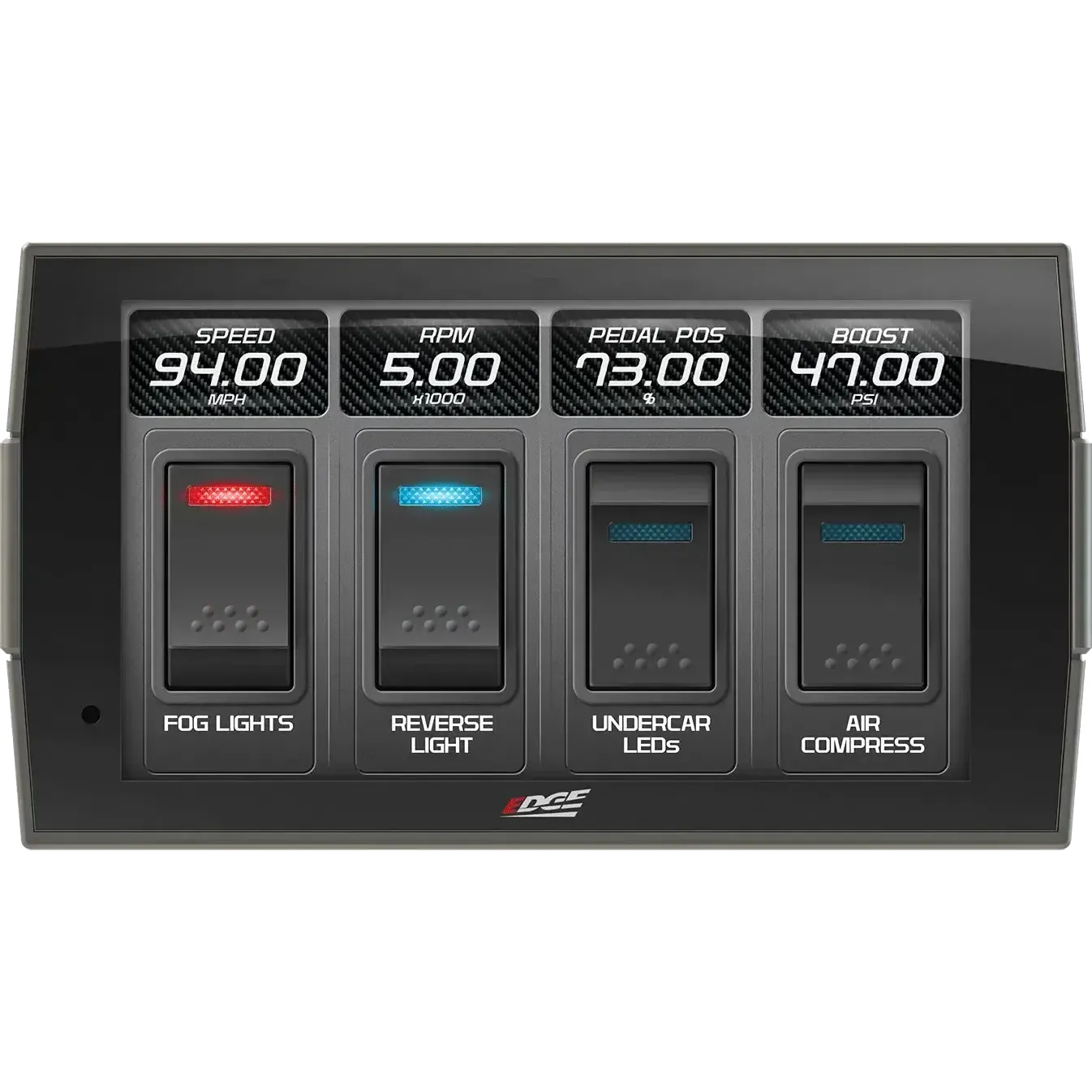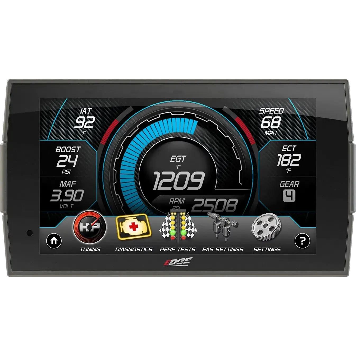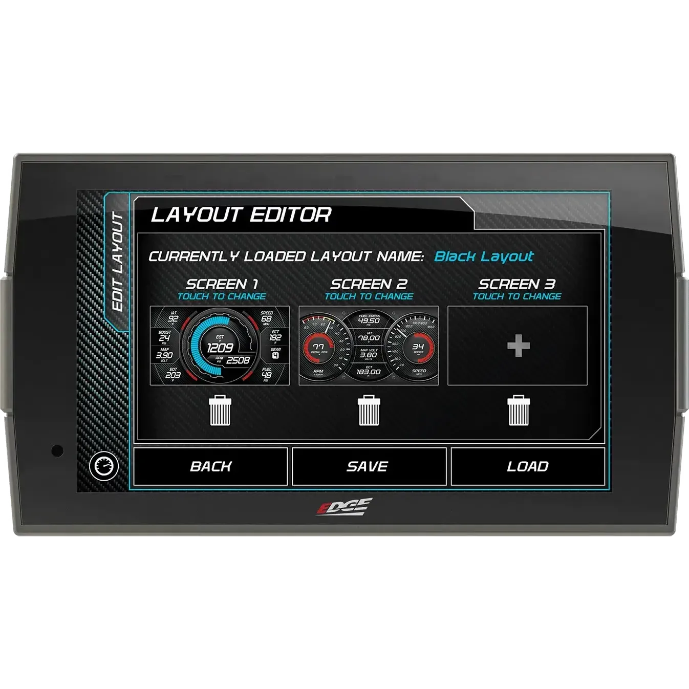 - Swipe capability allows easy switching between screens as needed for towing, performance, economy, etc.