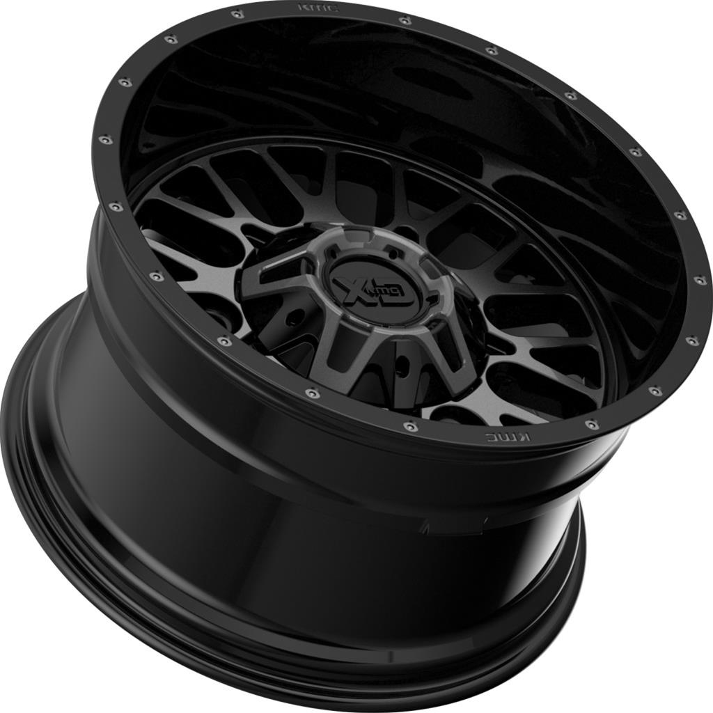 Catch everyone's attention with these Snare wheels featuring a mesh-like multi-spoke design with a black satin finish and gray tinted spoke face. They have deep outer lip with simulated gray tint rivets. This design provides a seamless branded XD center cap.